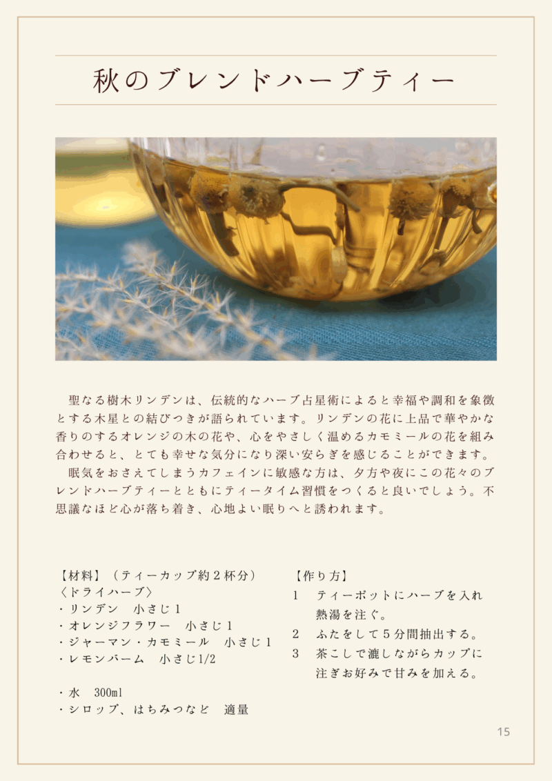 このeBook(小冊子)は、季節の流れとともにハーブ療法を暮らしで実践するためのガイドブックです。